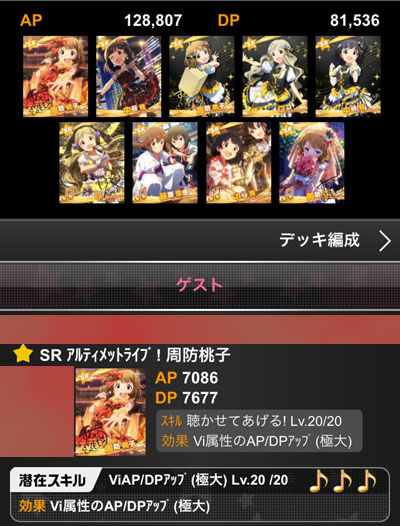 SPアピールの威力上昇と潜在がある分、デッキ2の方が発揮値が出ました。