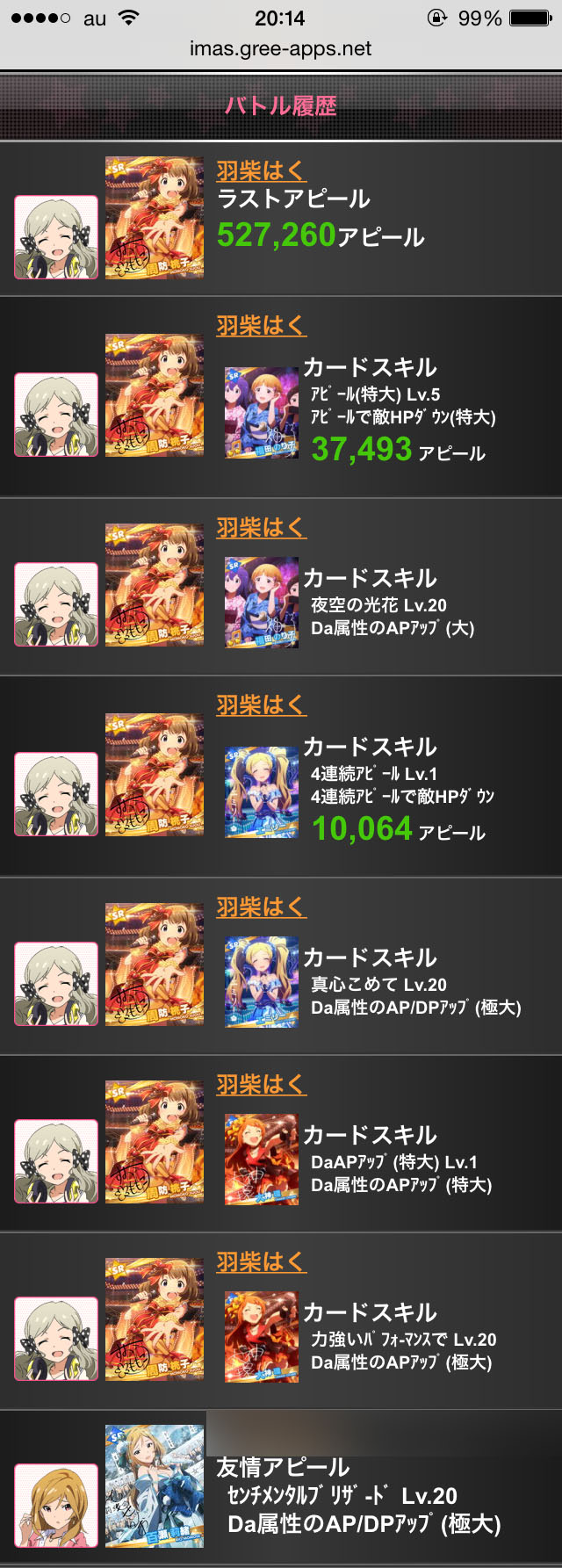 単属性APアップ特大1Lvでラストアピールが14,000程上昇しました。