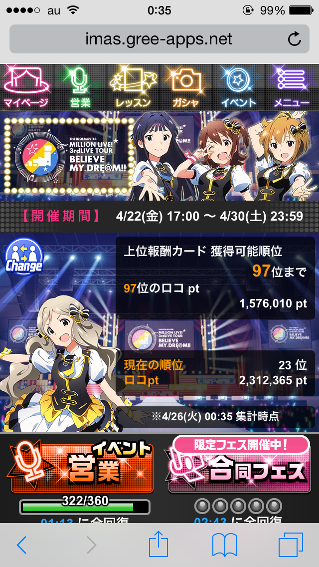 完全に自分メモだねこれ イベント始まったら前日との票の差を(+000)表記したいね。 時間あるかなー |