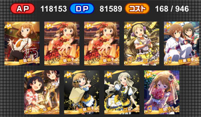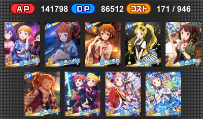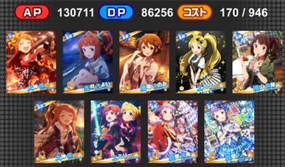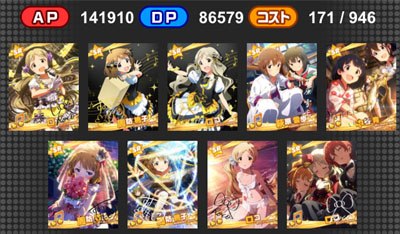 『シンデレラガールズvsミリオンライブ!』 ライブに向けて練習に励む346と765 はじめはライバルとして打ち勝つ事を考えるアイドルもいる中、 なんやかんやで仲良くなって、最後はみんなで大きなライブを成功させる! みたいな(ボスどこいった) 誰かが準備した壁よりも、自分で掲げた目標に挑んでいく方が好き。 妄想力の弱い話はここまでにして デッキ1:極大0+片面8+両面1 デッキ2:極大1+片面7+両面1 APアップ極大+潜在APアップ特大 と AP大アップ+潜在アピール特大 以前、どうなるんでしょうねと言っていたこの組み合わせ。 よく考えたら、DaAPアップ特大が手に入っていたので検証できますね。 アピール(特大)5Lvを持つのり子と DaAPアップ(特大)5Lvを持つ環を入れ替えて発揮値チェック ゲストはSPアピールと最も効率の良い両面極大+潜在両面極大 ※両面が1枚入っているのは、片面が足りなかったから ※BMDエミリーは借り物です やよい(APDP合計26237:15321+1340 8806+770) Voアピール(極大)14Lv:66,004アピール
