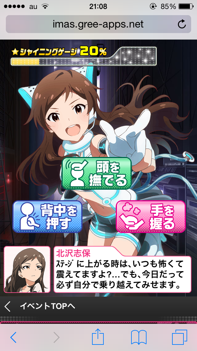 イベント営業時に三択が出ます。好きな選択肢を選びましょう。