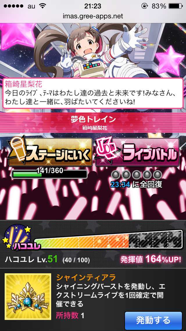 イベント営業でライブバトル。ハコユレレベルを上げる。