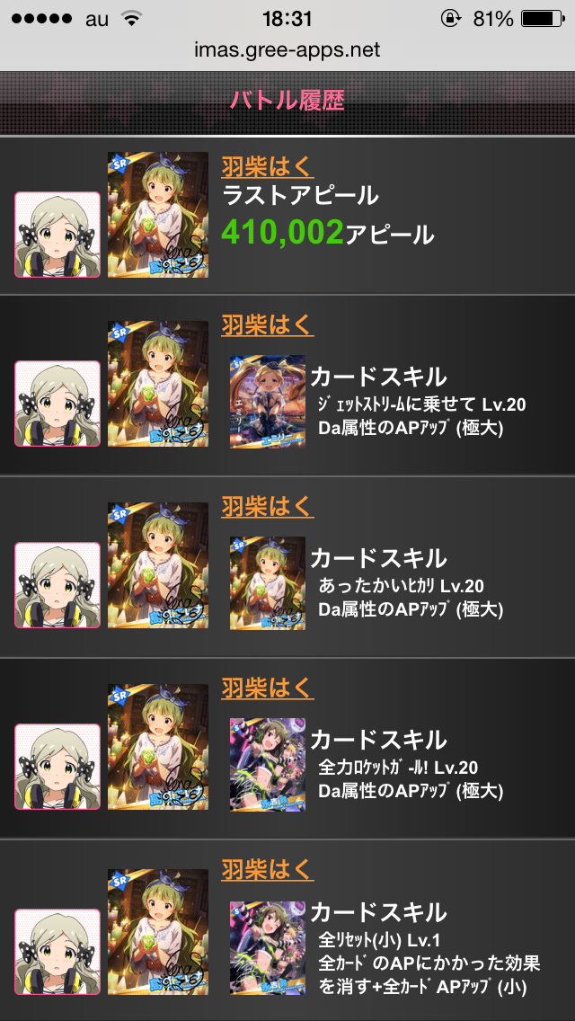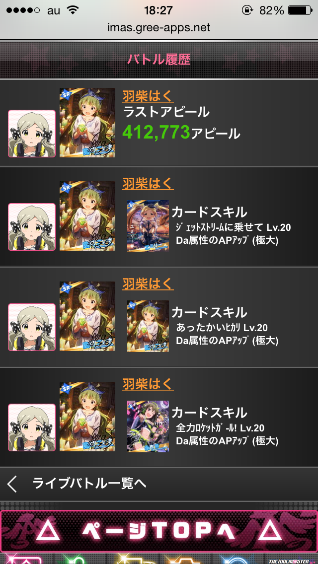 IMCEのイベントライブバトル。相手のHPに下方修正がかかりました。