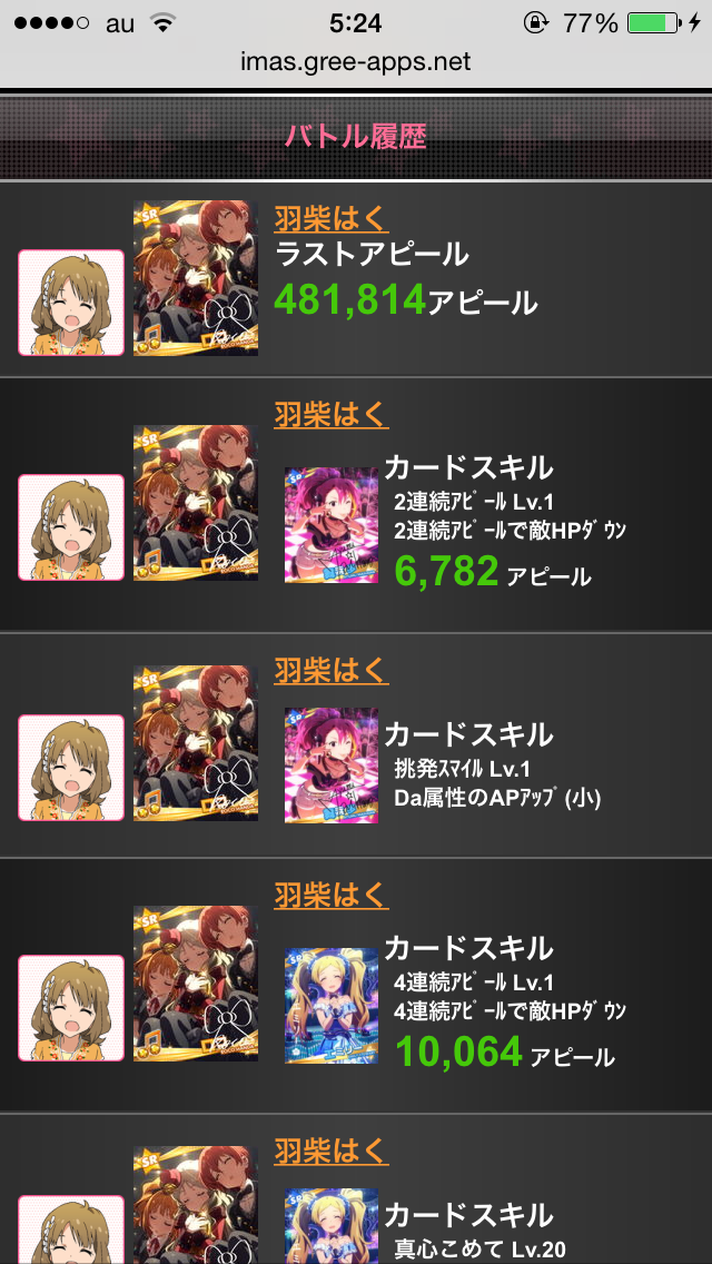 羽柴は特大アピールの威力に慣れてしまっているのでどうしても連続アピールをガード割り用として考えてしまうが、APDPの高いカードの継承したりレベルを上げるなどの工夫をする事で通常ライブバトルでも使用できる物になるのかもしれない