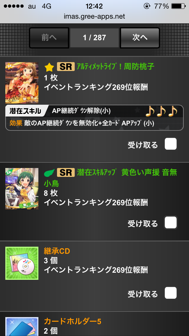 最後に最上位呼び出せるサイリウム70残してあり、飴の課金に躊躇しなかったのが勝因であり、ボーダーの跳ね具合をまったく予想できなかったのに入賞できたのは完全に幸運でした。