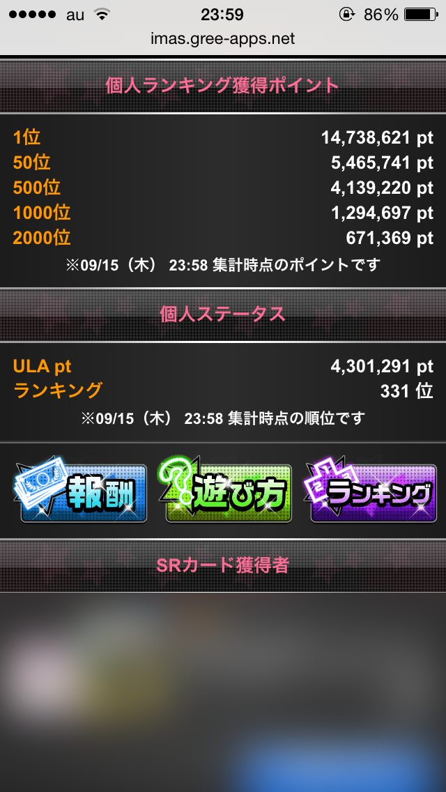 天井までガシャってイベント課金したのでもうぐぅの音も出ません。