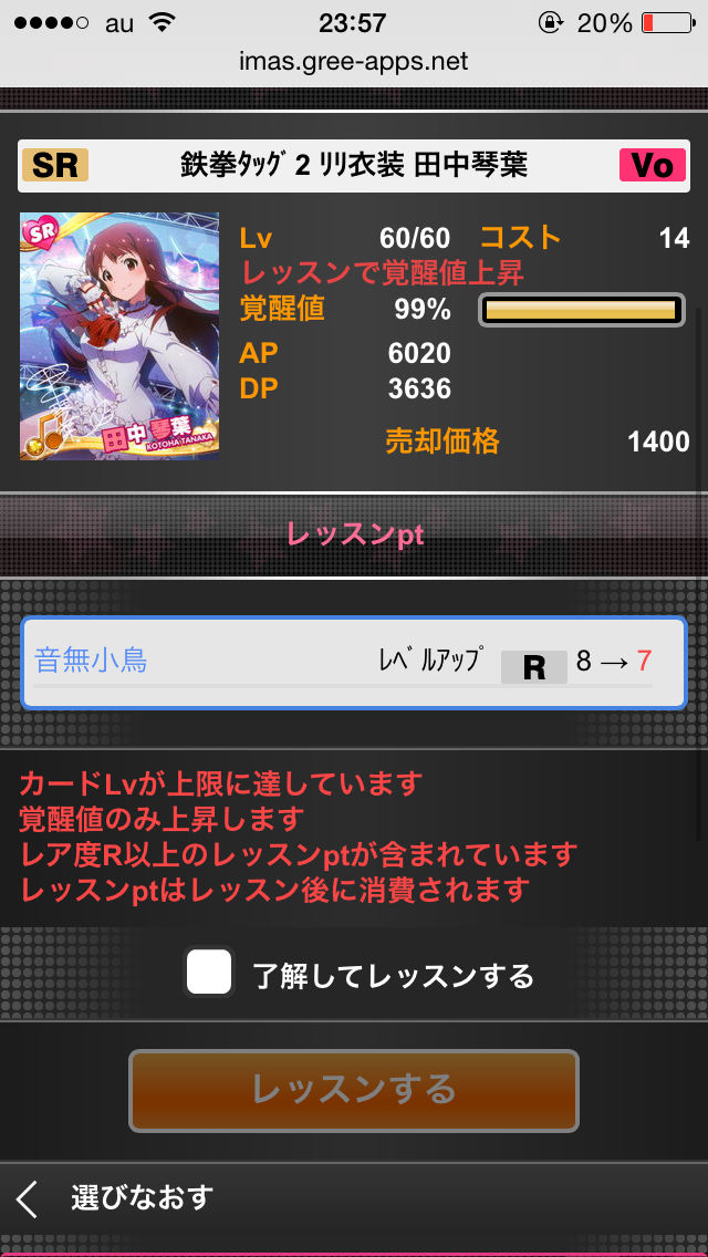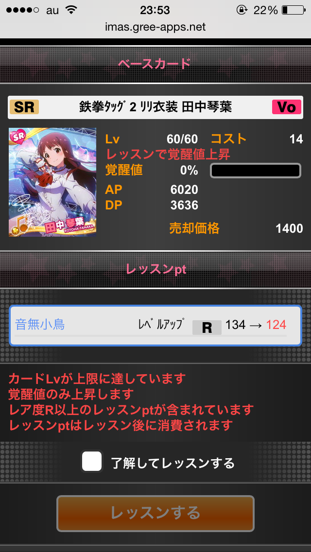 ・レベルMAXからR以上のカードでレッスンして覚醒値を上げる