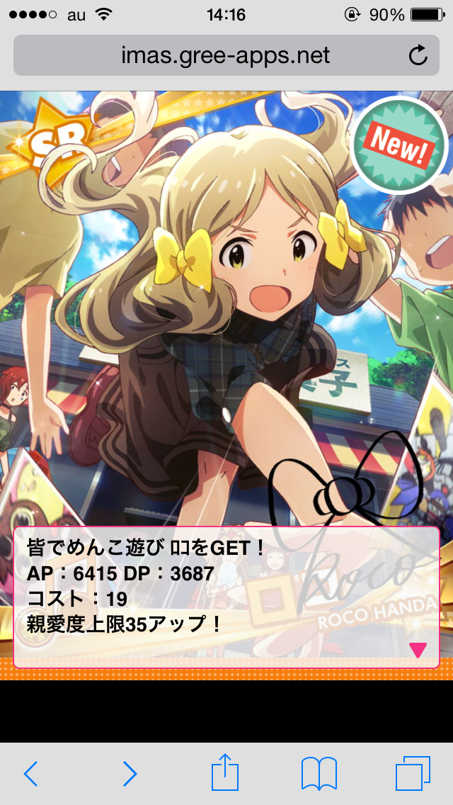 ライバルアピール力 両面極大+ゲスト両面極大でDP7594(ゲスト:妖美なハートのクイーン志保)が生存。(画像なし) ライバルアピールスキル アピールガード3Lv 4連続アピールか、2連続アピール+なんか潜在アピールでガードを砕けるデッキを編成しましょう ユニットカード 参加しているユニット5人に設定したカードのAPがアピールに加算されます。 19コスト片面大をセットしたい所ですが、ないなら19両面>18片面>18両面>完走SRといった形でとりあえずAPの高いカードを探して設定しておきましょう。 今の順位 ・・・・・・なんで走ってるみたいになってんのかな(自分で自分がわからない) 発揮値 極大環(潜在DaAP特大1Lv)と19SRやよいを入替 極大アピールをやよいに継承してなけなしのSR小鳥さんをがっつり投入。 ユニットカードは このみさんがBMD(19片面)、育はゆうげの育さん(19片面)。 真美がキューティーウェイトレス(18片面) 美奈子はパルフェノワール(メダルSR)、ひなたはベストショット(完走SR) ・・・・・・なんで走ってるみたいになってんのかな(自分で自分がわからない) 駄菓子屋ガシャ本日14時からスタート! 波間のロコ以降、念願の19コスト片面大ロコ、しかも曲名カード!! とは言え、ガシャは確率。リアルラックのない羽柴はくは、ガシャを控えたい。 ステップガシャの最後の20%チケでロコ 確定チケットでロコ ロコエピソード 天井までガシャりました。うぼぁー ココロがロコロコするんじゃ~ |
