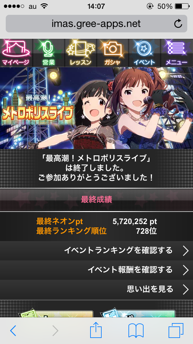 スクショ撮ってたけどアップするの手間なんで写真なしでソーリー! 不慣れな表の挿入でがんばったけど、見辛いねソーリー! そもそも、需要ないねこれ。わんだほー! アイマスは任侠とか極道とか時代劇とかちょくちょく入れてきますね! 学園ホラーはイベントでホラー物を数回やっている為、若干先入観もあるか と思いきや、琴エレ恵が良い感じに団結している!すげぇ 推しの桃子先輩は任侠のお嬢、ロコは剣魔の村人で暫定1位。 どちらも400票以上と良い感じでまとまっていますね!やったぜ 美奈子と杏奈がどの役に行き着くのか心配。 次回があるとすれば、ミリタリとかSFも入ってくるか はたまた、日常系・・・・・・は、ないか。 日記書いている間に19日になってしまいましたが、 18日はマルちゃん×ミリオンライブ!の第二弾、クリアポスターが貰えるよ!の日ですね! 早速、近くないけど近くのイオン行って来ました。そして無事ゲット。-完- このイオンには、レシート応募用のハガキが置いてないんだぜよ |